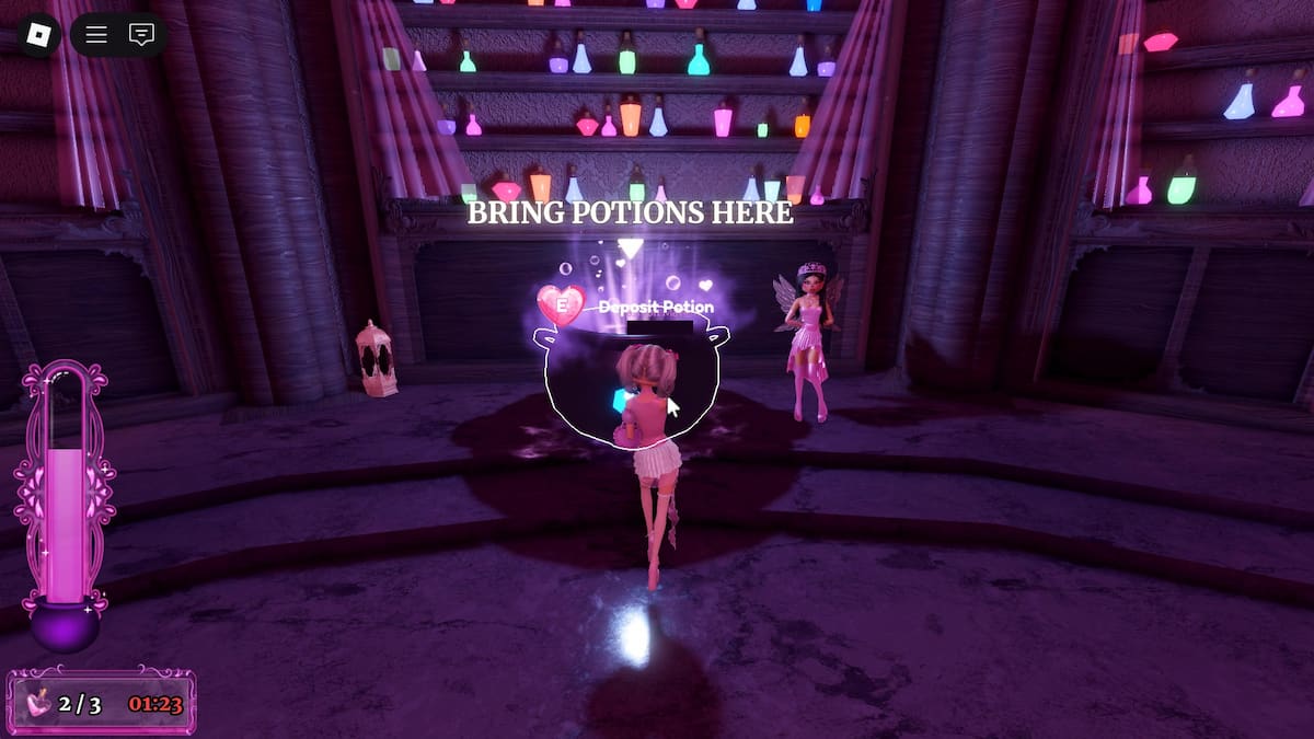 당신의 물약이 끝났으므로, 당신은 그것을 Leah Ashe 옆의 큰 가마솥으로 가져 가서 E 키를 눌러 입금 할 수 있습니다. 이 퀘스트를 완료하려면이 단계를 두 번 더 반복하십시오.