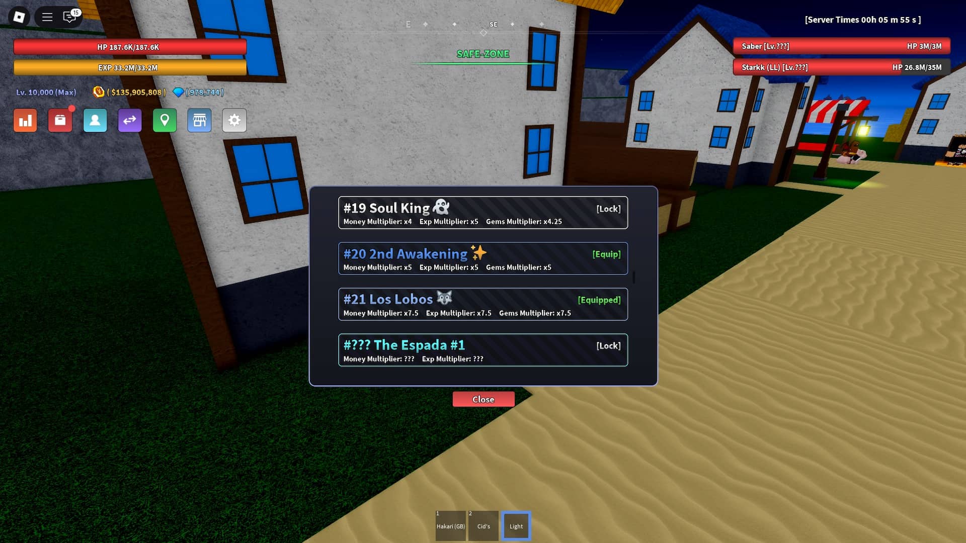 Lost Lobos 타이틀은 돈, Exp 및 보석 에 7.5 배의 승수를 제공합니다. 따라서, 당신이 전에 보스로부터 100 개의 보석을 얻었다면,이 타이틀을 사용하면 지금부터 750을 얻을 것입니다. 덕분에, 당신은 거의 다시는 보석이 부족하지 않을 것입니다.