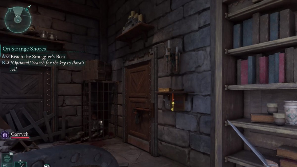 Ilora는 그녀의 셀의 열쇠가 소장의 방에 있다고 말할 것입니다. 복도 끝의 문쪽으로 가서 상자 위로 올라갑니다. 다른 플랫폼으로 넘어 가서 당신 위의 통로로 이동하십시오. 오른쪽에, 당신은 일부 보드를 뚫고 소장의 방으로 내려갈 수 있습니다. 열쇠는 문 옆에 있습니다. Ilora를 저장하든 아니든, 열쇠를 사용하여 옆에 세포를 열어 세포를 넘어서 Deerskin 장갑을 얻을 수 있습니다.