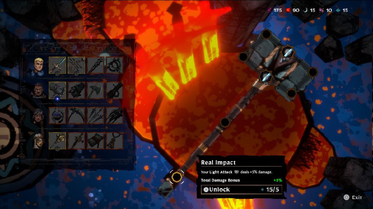 | 루그, 운명의 손 | 일정 비율만큼의 손상을 증가시키고 공격/철자가 치명적인 타격을 입을 수있는 기회를 제공합니다. 금을 끄는 패시브 또는 금을 사용하는 데 드는 추가 기술 (예 : 저장 당 20 개의 코인에 대한 50%의 피해 감소)을 부여합니다. | + 빠른 무기 (중요한 타격에 대한 더 많은 기회) + 하드 치는 무기 (최고의 데미지 스케일링) + 대시 |