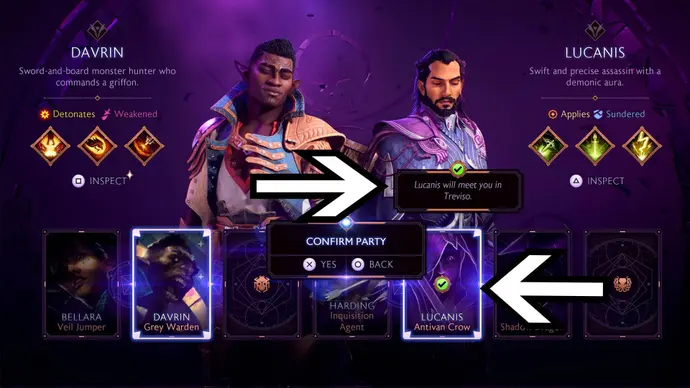 Once you've decided which companions you want to add to your party, select them and then confirm that this is the party you want to use.