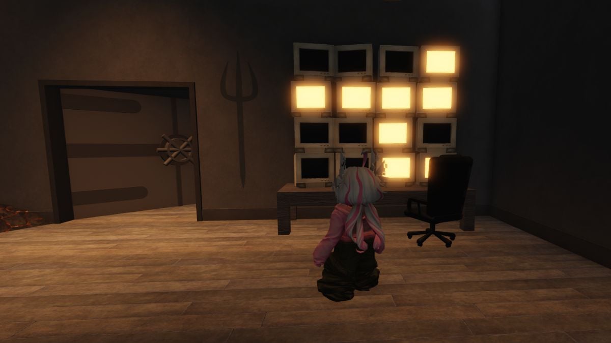 Exit the game mode and return to the lobby. Go to the right of the Hunt Mega Edition Quest portal to find a basement door before the H|K symbol. After entering, you will find several monitors with lights. Replicate the same light pattern as shown earlier on the monitor screen by toggling the lights. If you do this correctly, you will open a vault on the left side of the room.