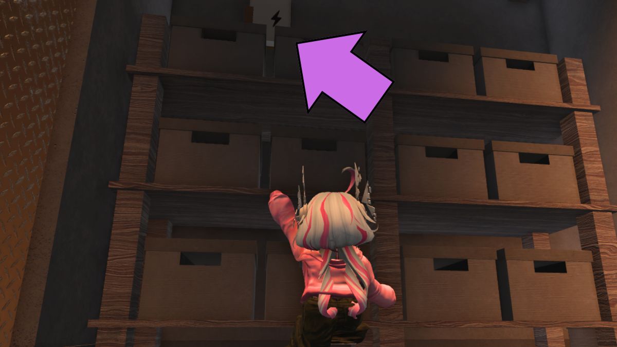 Once you have gotten a score above 130 and impressed the judge, you can return to the basement. Here, in the garage room, you will find another recipe note; simply pick it up. Immediately, you will notice the door behind you completely closed. Now, climb the right shelf in the room to find a fuse box. Break it to get yourself free from the room, and get the Mega Token badge at the end.