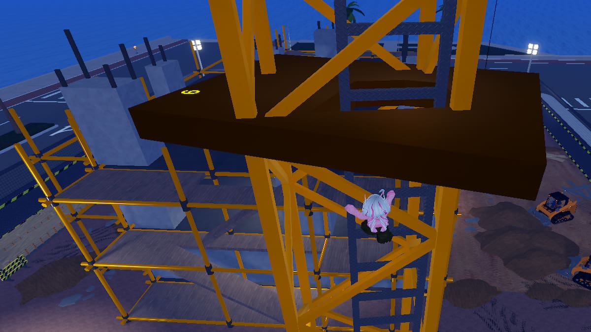 • Yellow: At the yellow mark on the Map, you will see a construction site with a crane at the center. Climb the crane using the Ladder to find a number on its platform.