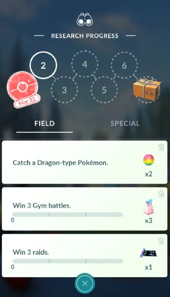 Todos os dias, os Pokéstops lhe darão uma nova missão, e cada tipo de missão pode ter uma das muitas recompensas diferentes, de consumíveis exclusivos para RAID, como TMS e doces raros e itens comuns, como Balls Poké.