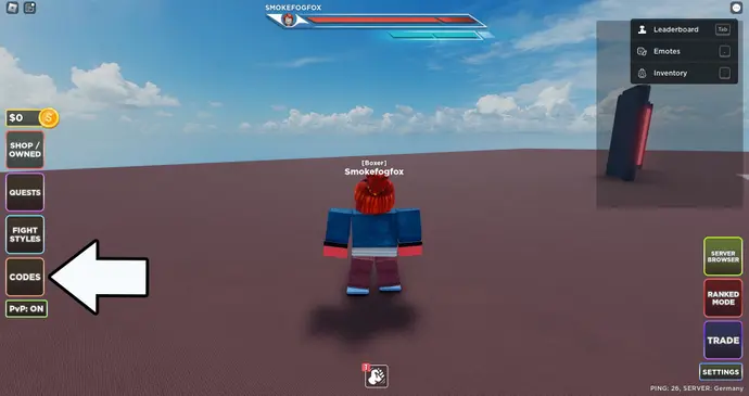 Once you're playing Untitled Boxing Game, look for the 'Codes' button on the left-hand side of the screen .