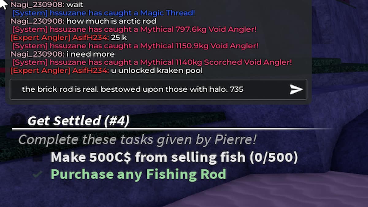 ประการแรกให้เราเข้าใจเมื่อคุณจะได้รับข้อความเฉพาะใน Brick Rod ข้อความนี้มักจะปรากฏขึ้นใน FISCH หากคุณไม่พิมพ์ข้อความเฉพาะใน Server Chatbox หลังจากจัดทำชื่อที่ถูกต้องสำหรับชั่วโมงนั้น ข้อความที่ฉันกำลังพูดถึงเป็นข้อความคล้ายคำสั่งเล็ก ๆ ที่มีทั้งรหัส รหัสคำ + รหัส ตัวเลข ที่ได้รับจาก หนองน้ำ Mushgrove และ แยกออก จากกันตามลำดับ เพื่อให้เข้าใจได้มากขึ้นฉันได้ให้แม่แบบวลีและตัวอย่างด้านล่าง